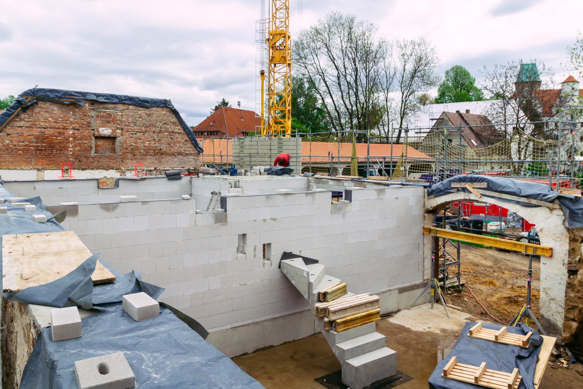 Insgesamt werden hier drei Gebäude von uns aufwendig zu Wohnhäusern saniert. Ein hohes Maß an Handwerkskunst und Sachverstand ist hier gefragt, denn jedes Haus hat seine Besonderheiten.