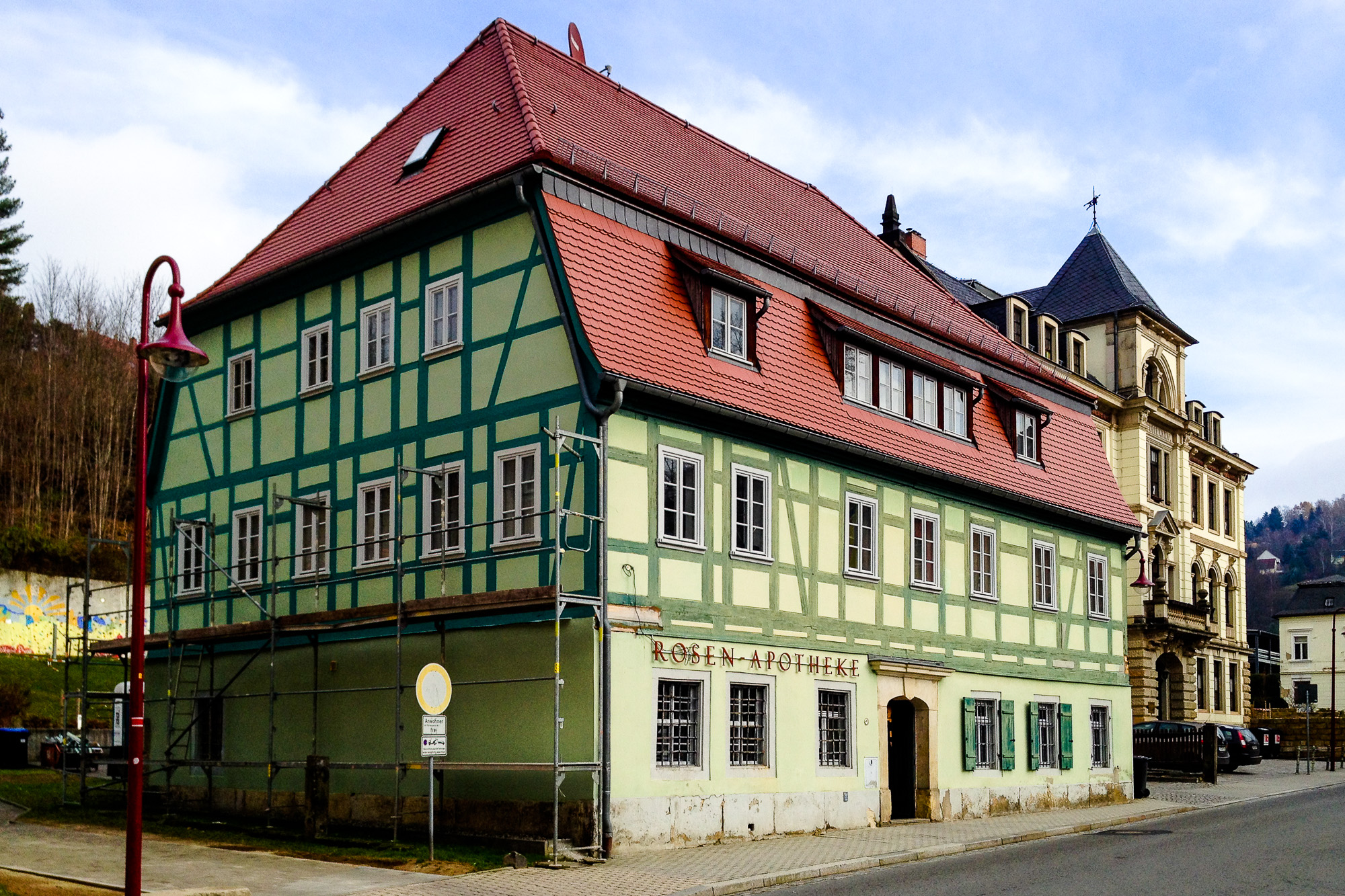 Fachgerechte Sanierung einer historischen Fachwerksfassade unter holzschutztechnischen und denkmalschutzrechtlichen Vorgaben.
