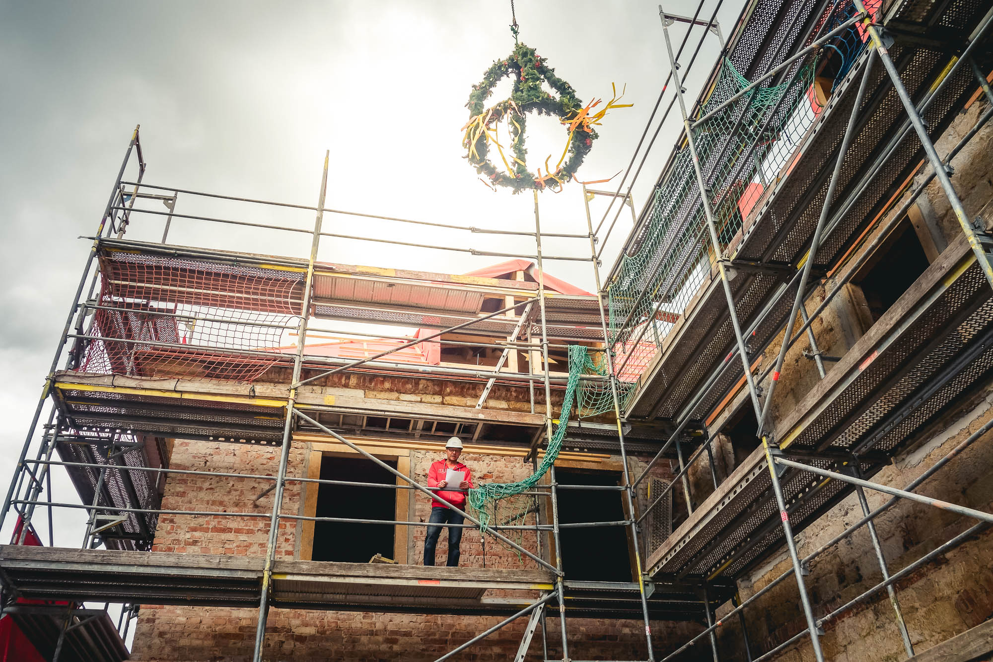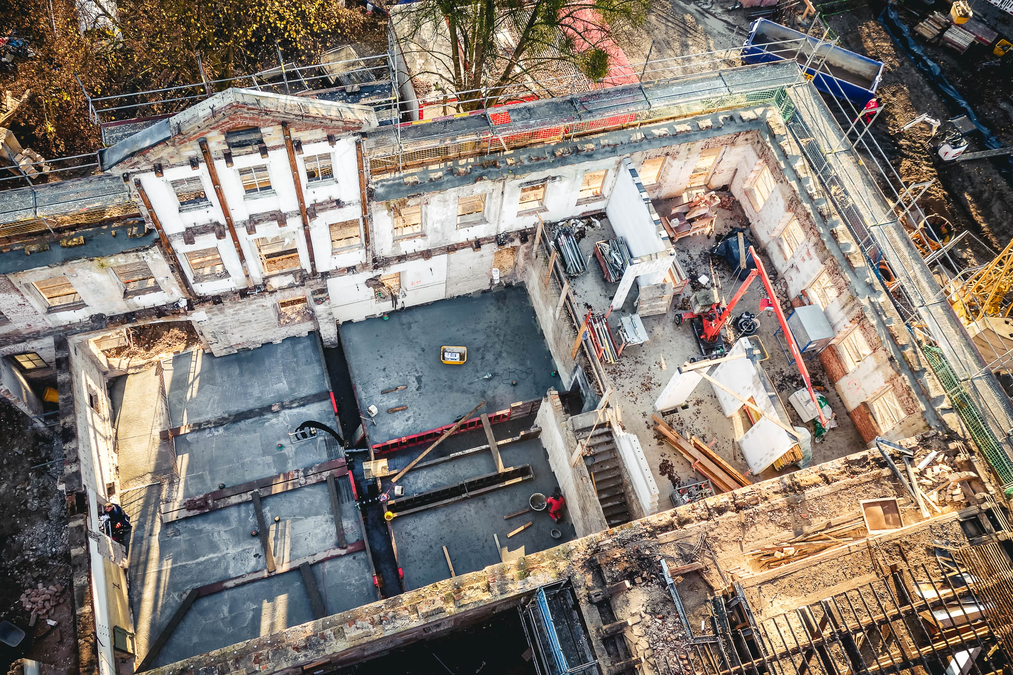 Unsere Aufgabe bestand darin, einige der über 400 Jahre alten Baubestände abzubrechen. Anschließend erstellen wir den Rohbau und sanierten die erhaltenen Altbestände.