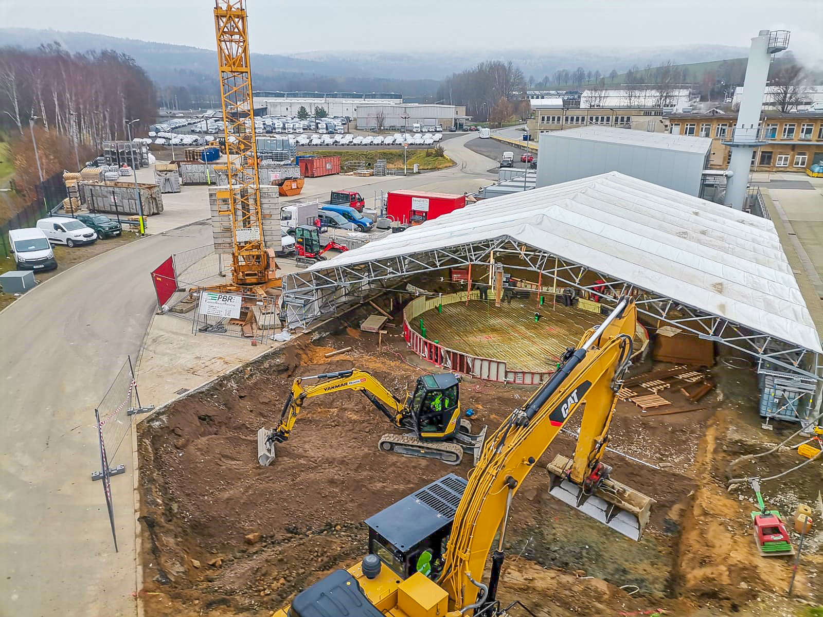 Das Bauunternehmen bendl HTS wurde mit den Erd- und Betonarbeiten für die neue Restholzverbrennungsanlage der Firma CAPRON in Neustadt beauftragt. Bevor wir mit den Bauarbeiten beginnen konnten, musste auf dem lehmigen Untergrund eine Arbeitsebene geschaffen werden. Mit der Unterstützung der Firma Putzkauer Baustoff Recycling gelang es uns, 2.500 Tonnen Erde abzutragen und diese durch eine 2.000 Tonnen Frostschutzschicht zu ersetzen. Zur Tiefengründung gossen wir im Anschluss daran 14 bis zu vier Meter tiefe und 2,5 Meter breite Betonfundamente.