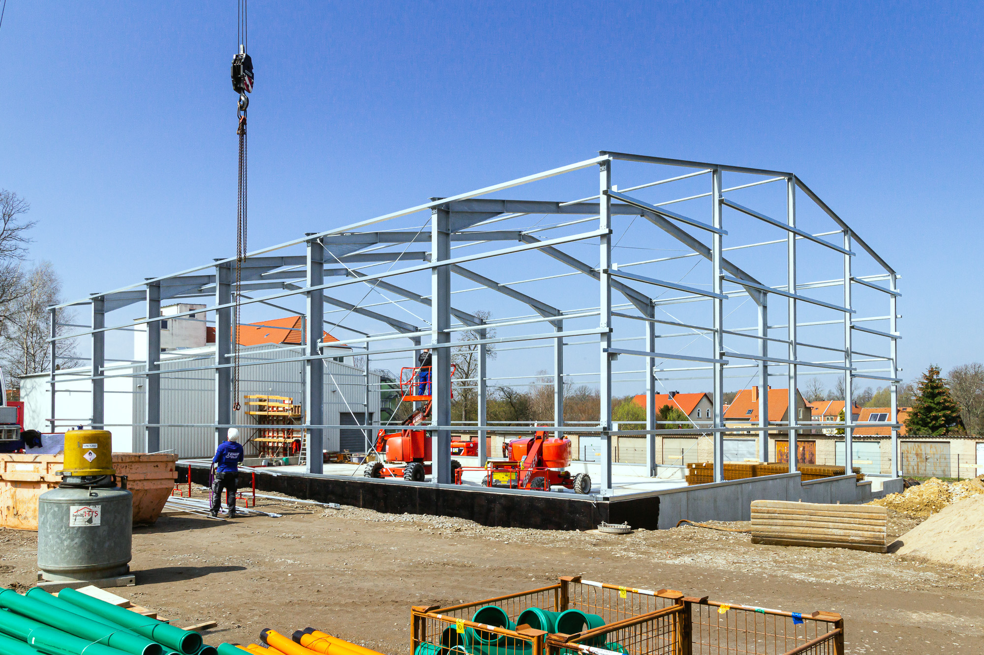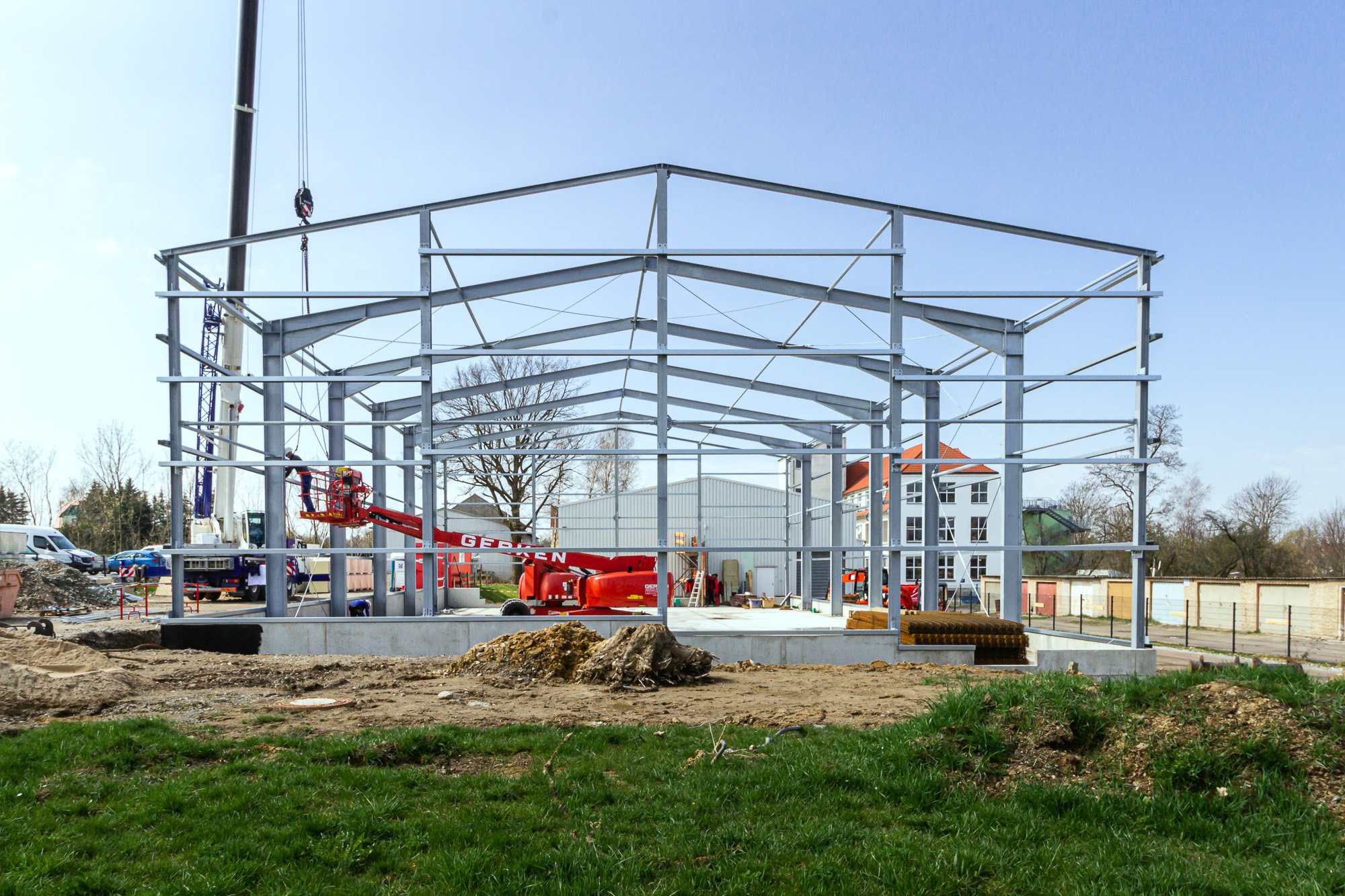 Für unseren langjährigen Stammkunden, die Firma SHZ Sächsische Hebe- und Zurrtechnik GmbH in Großröhrsdorf, haben wir ab Januar 2021 mit dem Rohbau der neuen Lagerhalle begonnen. Die Bauarbeiten werden im Juli 2021 beendet sein.
