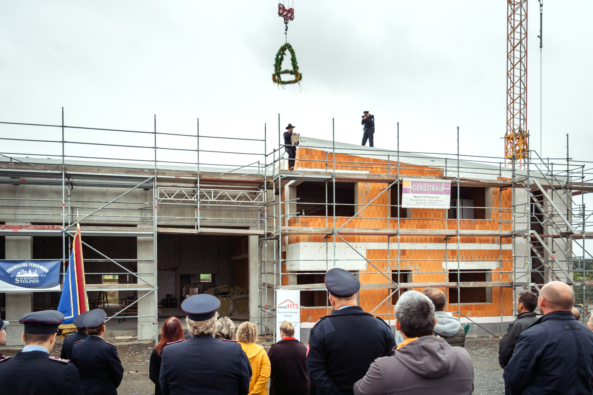 Für die neue Fahrzeughalle und das neue Funktionsgebäude der FFW Stolpen konnten wir in nur 5 Monaten den Rohbau abschließen und ihn im Rahmen eines Richtfests feierlich an die Stadt Stolpen übergeben. Bürgermeister Uwe Steglich bedankte sich bei allen Beteiligten für die schnelle Umsetzung und gute Zusammenarbeit.